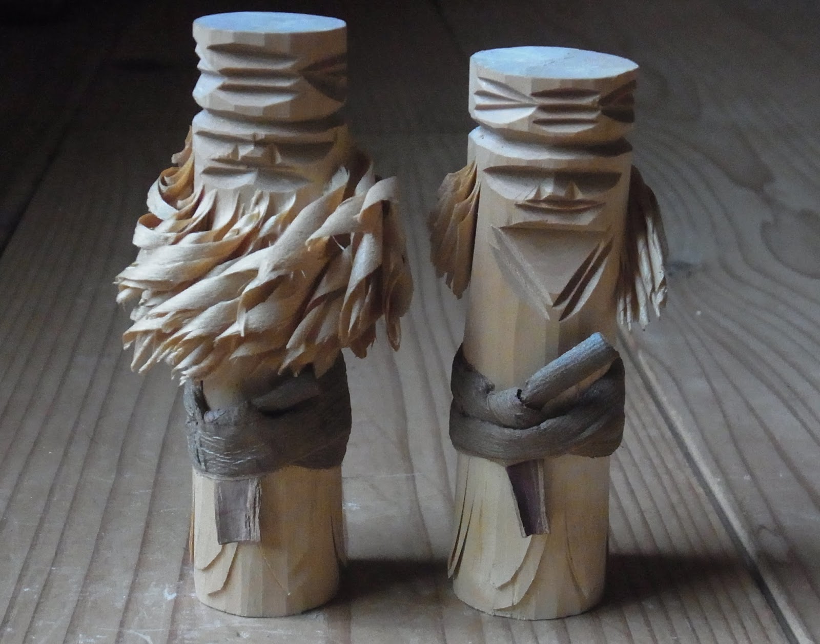 八郷の日々 削りかけのアイヌの夫婦人形