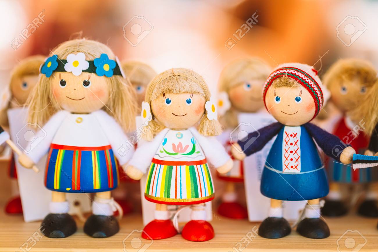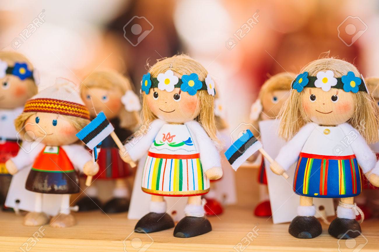 市場でカラフルなエストニア木製人形 人形は タリンや国の文化のシンボルから最も人気のあるお土産です の写真素材 画像素材 Image 31872283