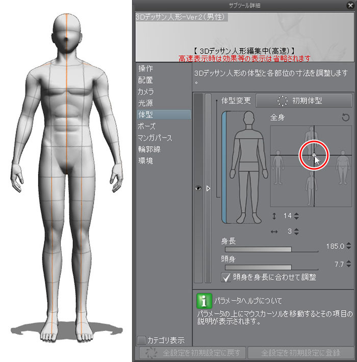 クリスタの3dデッサン人形を好みの体型に設定する方法をご紹介 お絵かき図鑑
