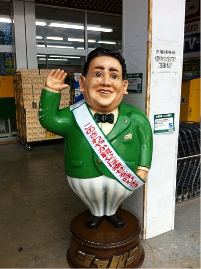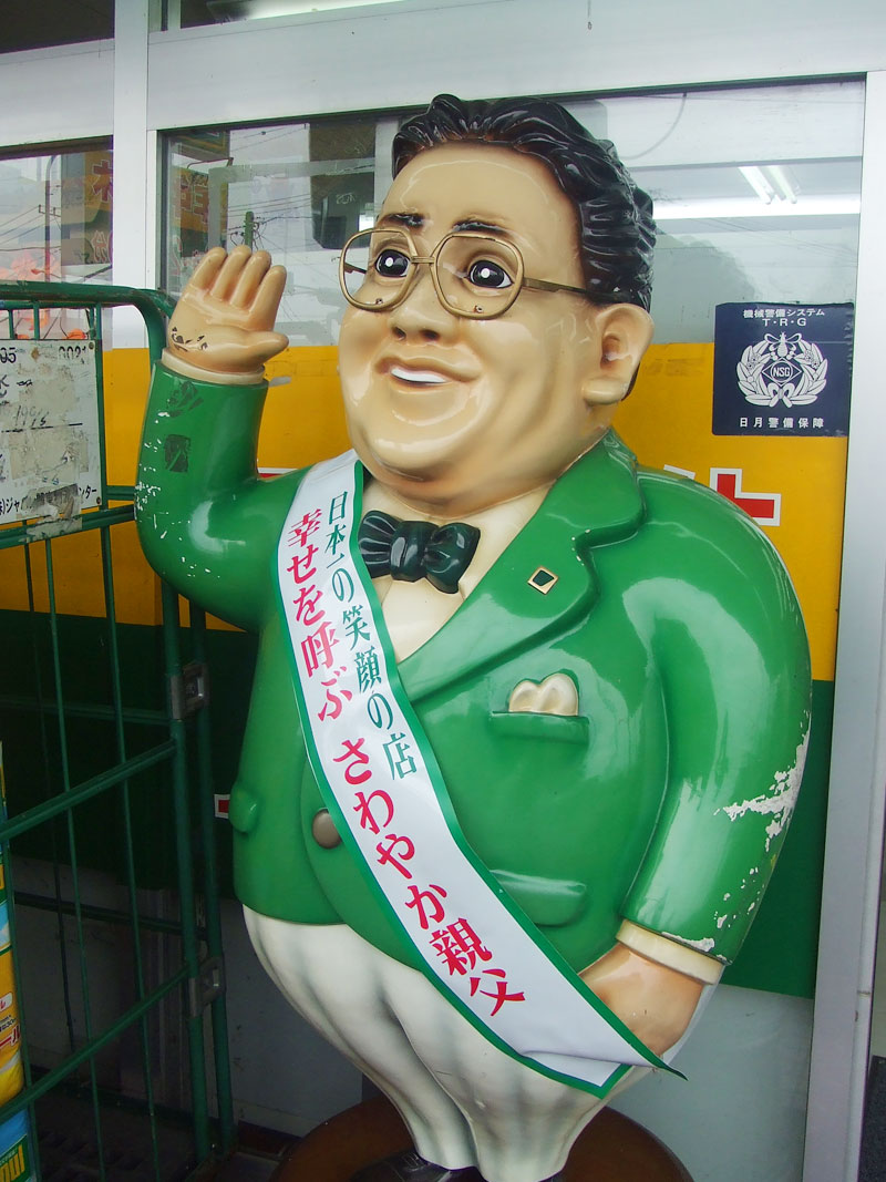 ディスカウントストア ジャパン 入り口で迎えてくれる さわやか親父 貯金箱 レトログッズコレクターの homeな日常