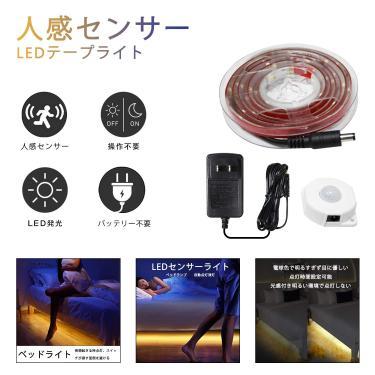 Brtlx 人感センサーライト Ledテープライト 150cm 12v 防水 優しい光 自動点灯消灯 光感センサー フットライト ベッドの下 廊下 ドア 玄関ライト キッチン間接照明 切断可能