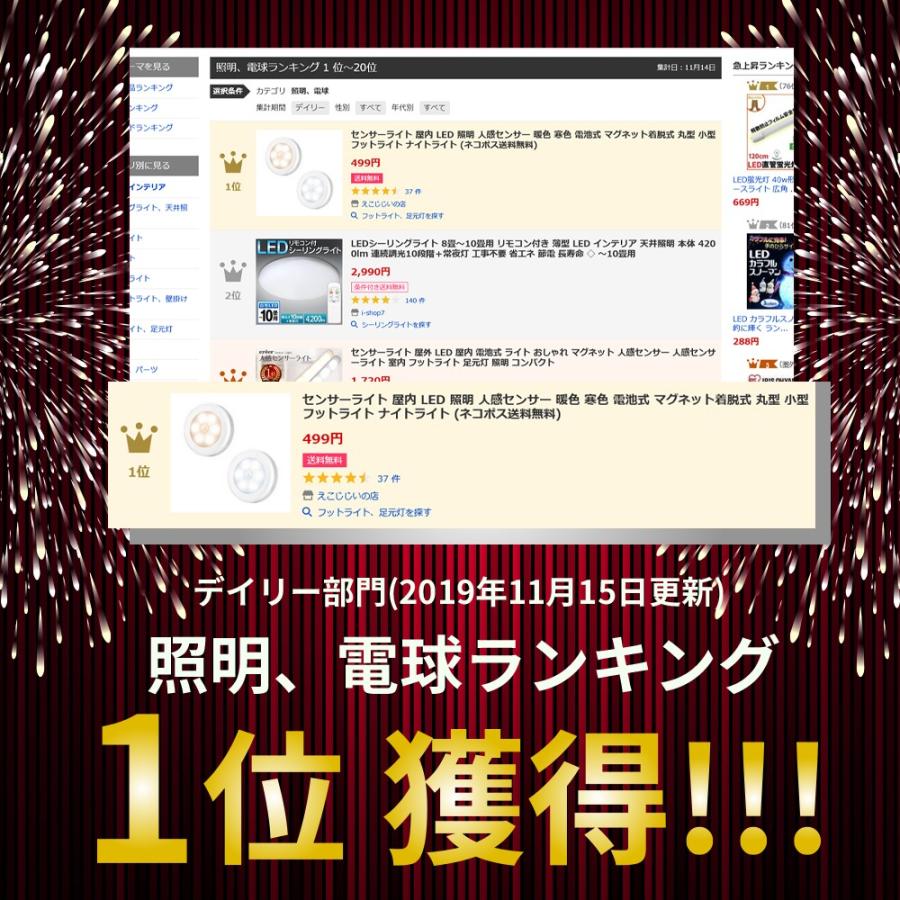 センサーライト 屋内 Led 照明 人感センサー 暖色 寒色 電池式 マグネット着脱式 丸型 小型 フットライト ナイトライト ネコポス送料無料 Led Sensor02 えこじじいの店 通販 Yahoo ショッピング