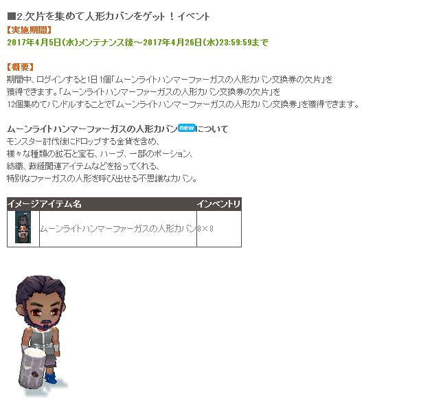 ムーンライトハンマーファーガスの人形カバン 自由掲示板 マビノギ