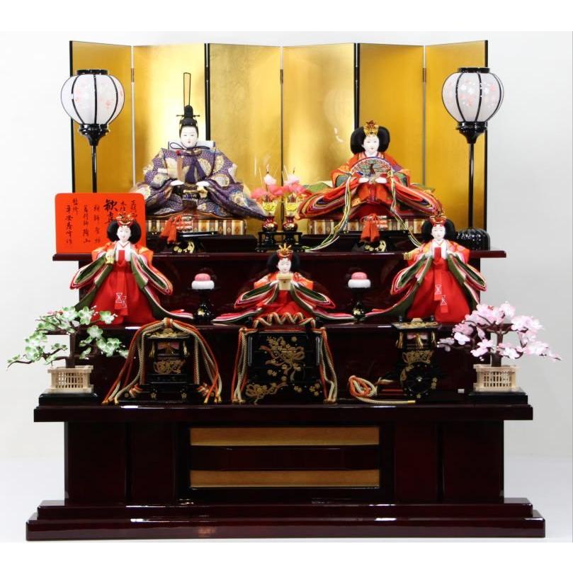 雛人形 歓喜雛正絹西陣織衣裳五人三段飾り42a33 ケース飾り 季節玩具 雛人形 00624233 人形のモリシゲ