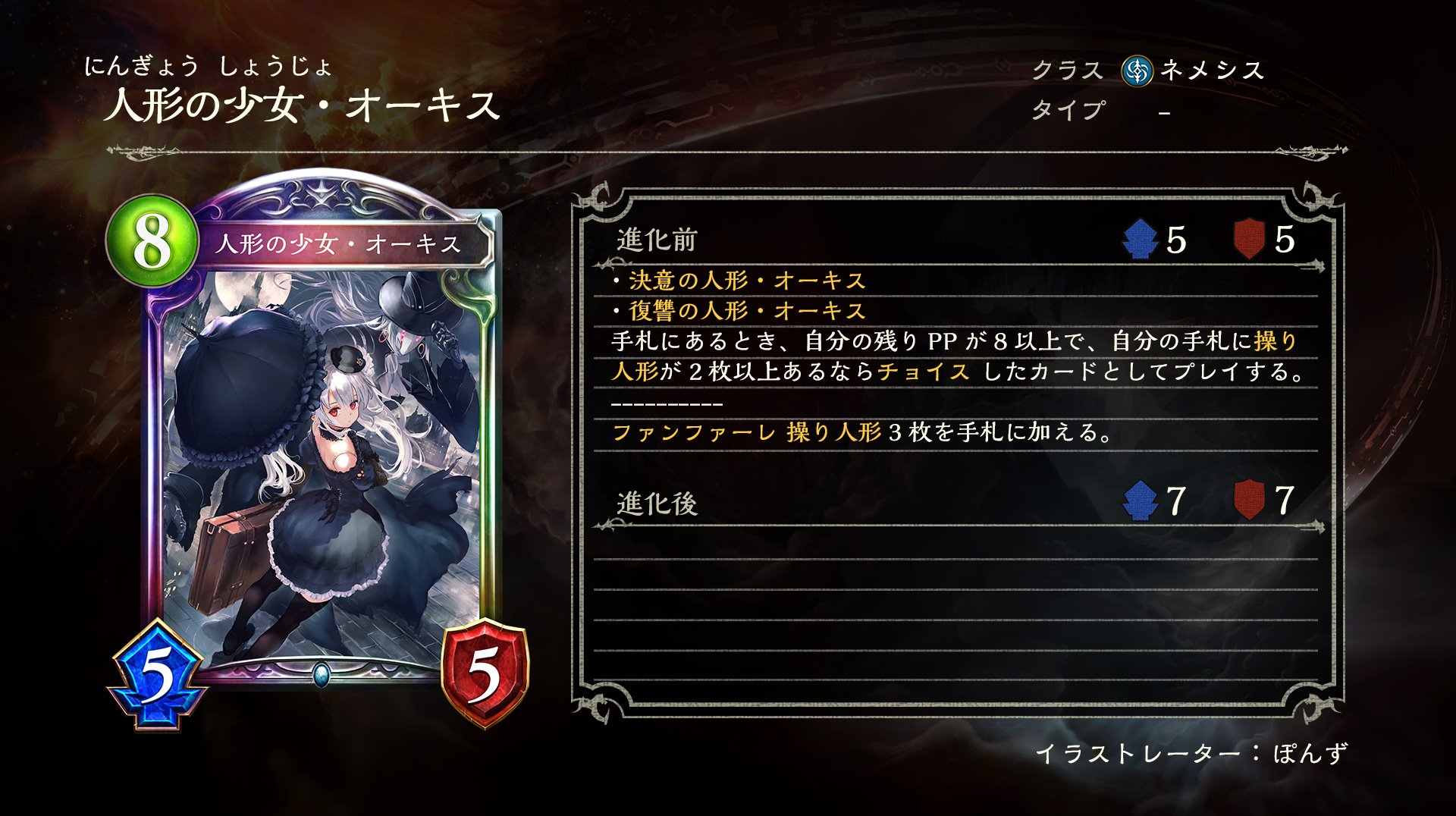 Shadowverse公式アカウント On Twitter Shadowverseイラストレーター紹介 今回紹介するのはぽんずさん Catponz 人形の少女 オーキス 他 多くのイラストを描いてくださっています 他イラスト 決意の人形 オーキス 復讐の人形 オーキス など