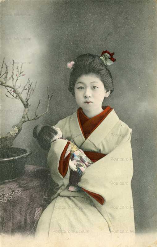 Fi001 人形を抱く少女 絵葉書資料館
