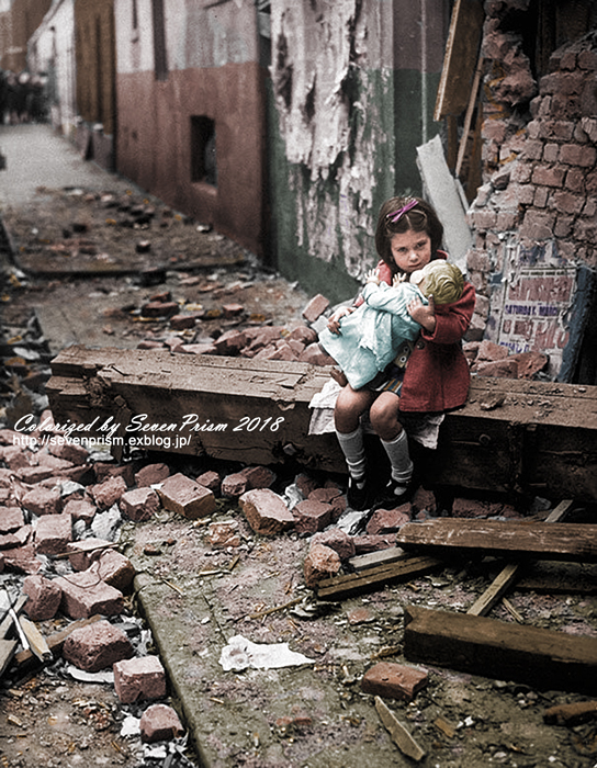 人形を抱く少女 ロンドン 1940年 Colorized War And Peace モノクロ写真のデジタル着色