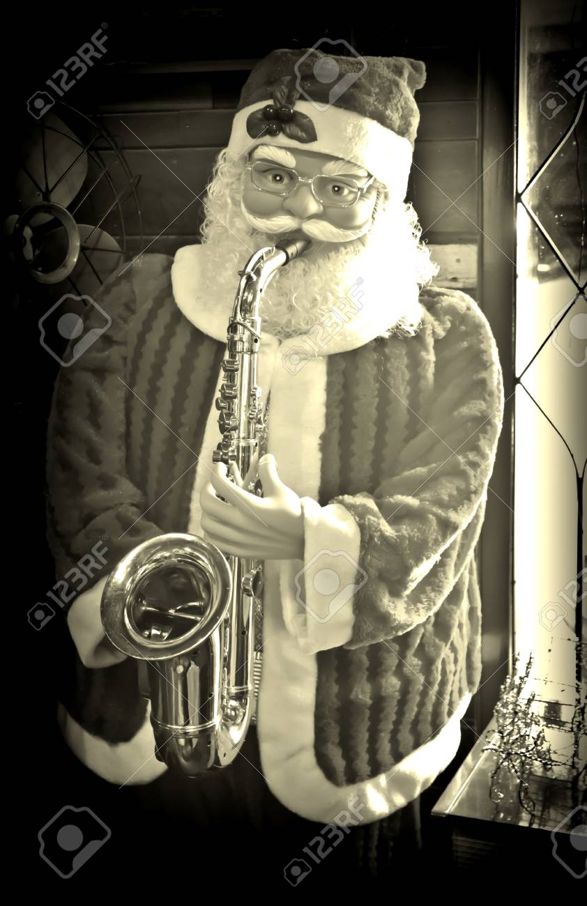 サックスを演奏するサンタ クロースの人形 クリスマスのテーマ イメージ の写真素材 画像素材 Image 34184611