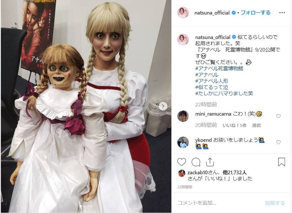 夏菜さんが呪いの人形 アナベル に変身 理由はズバリ 顔が似てるから らしい 2019年8月31日 エキサイトニュース