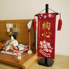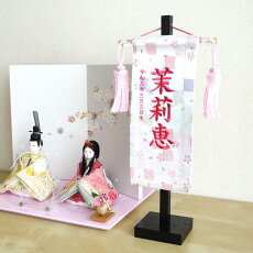 ジャガード刺繍名前旗 三色桜 ミニ ピンク 国産黒塗スタンド 人形の増村 店